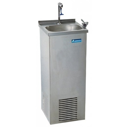 Drinking water cooler, free standing, stainless steel bodywork, rolled steel angle section framework