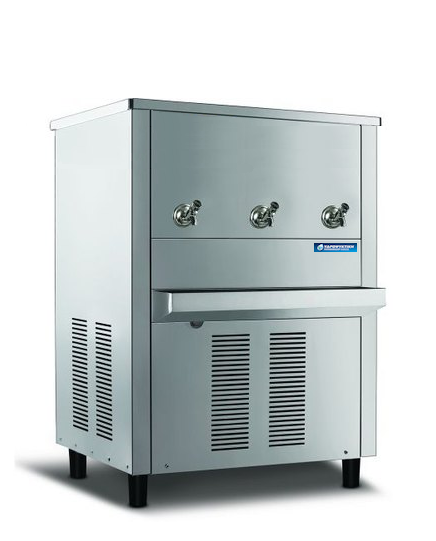 Stainless drinking water cooler, floor standing with 2 or 3 taps, ideal for places such as Schools, Universities, Hospitals, Barracks, Factories, etc.